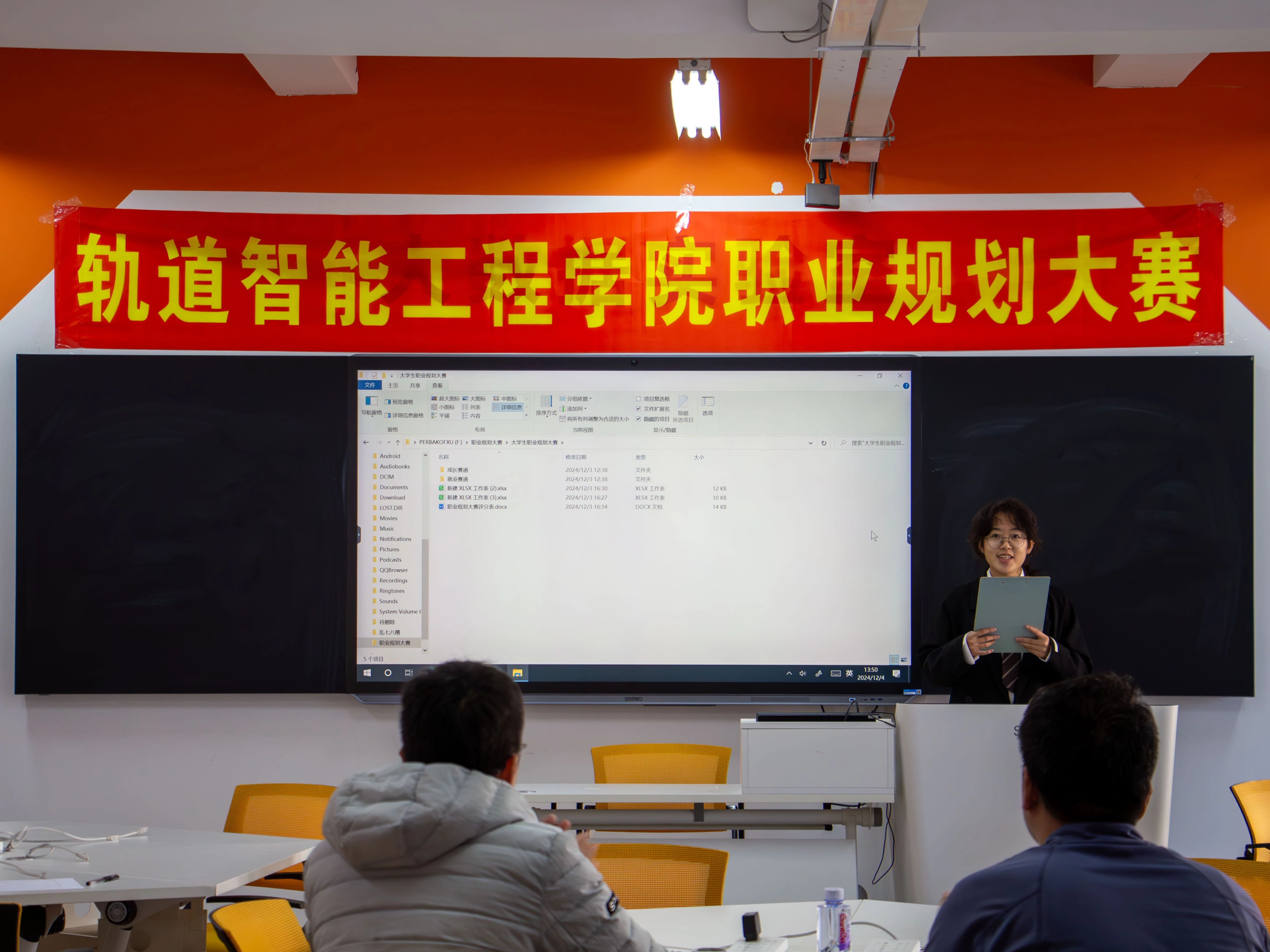 2024年职业规划大赛。学院特邀交通工程学院辅导员王雷,学院党委副书记邓晗,辅导员马光远、李修竹共同组成评委团,比赛由软工232班郭敬轩主持。