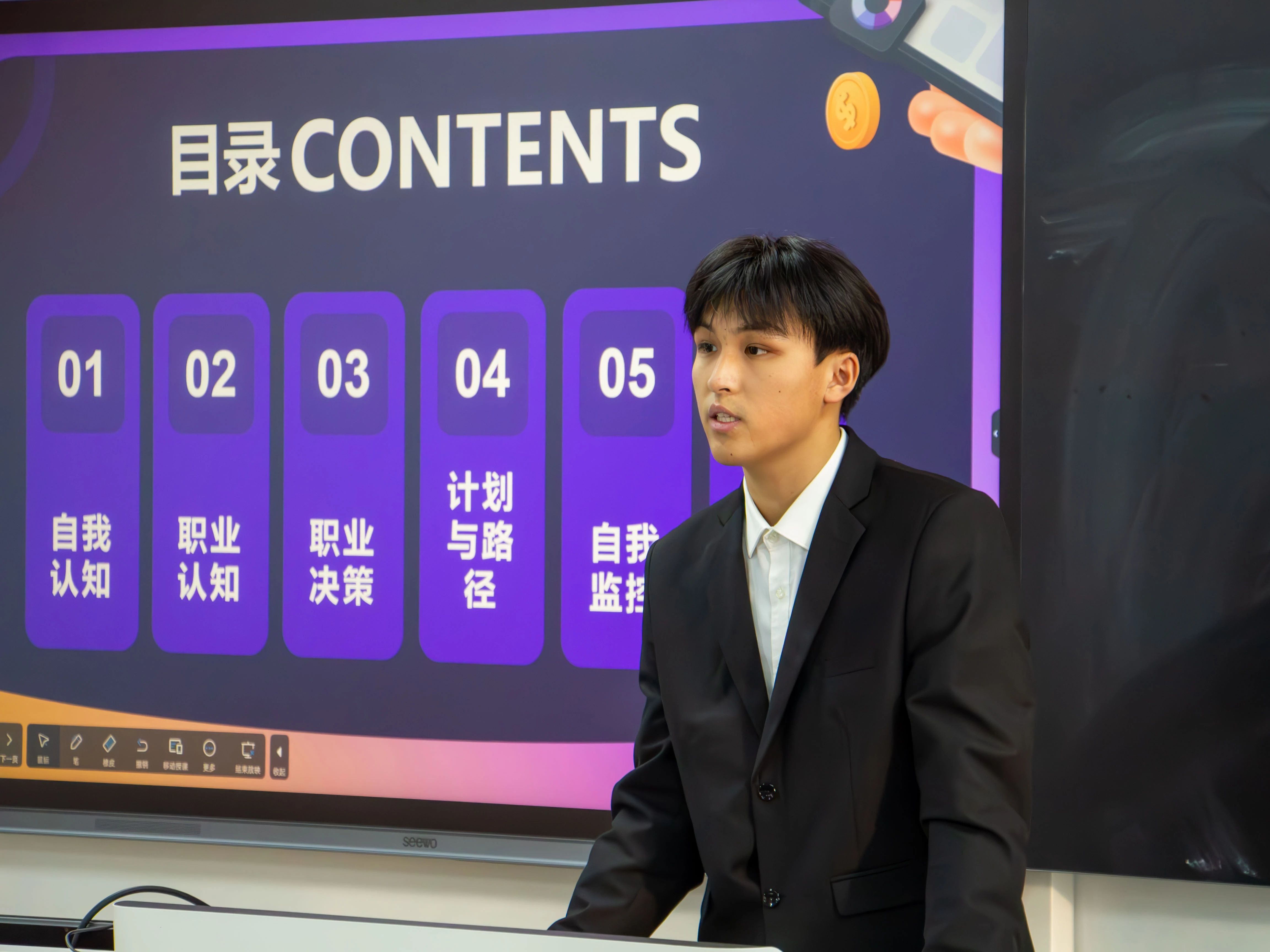 自大赛启动以来,便在全院学生中引发广泛关注,同学们积极踊跃参与其中,报名参赛学生覆盖学院全部年级专业,参与率高。在比赛中,同学们凭借精彩的PPT展示和生动的演讲,以及灵活巧妙的现场答辩,全方位地呈现了各自独具特色的职业规划方案,充分展现出大学生对未来职业的深入思考与明确规划。