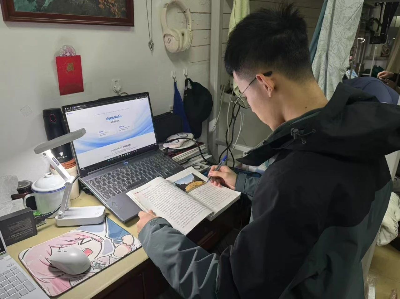 晚上,小小的寝室空间,摇身一变成了知识的宇宙。此刻,镜头精准定格,将他们为梦想全力拼搏的模样永久留存 。