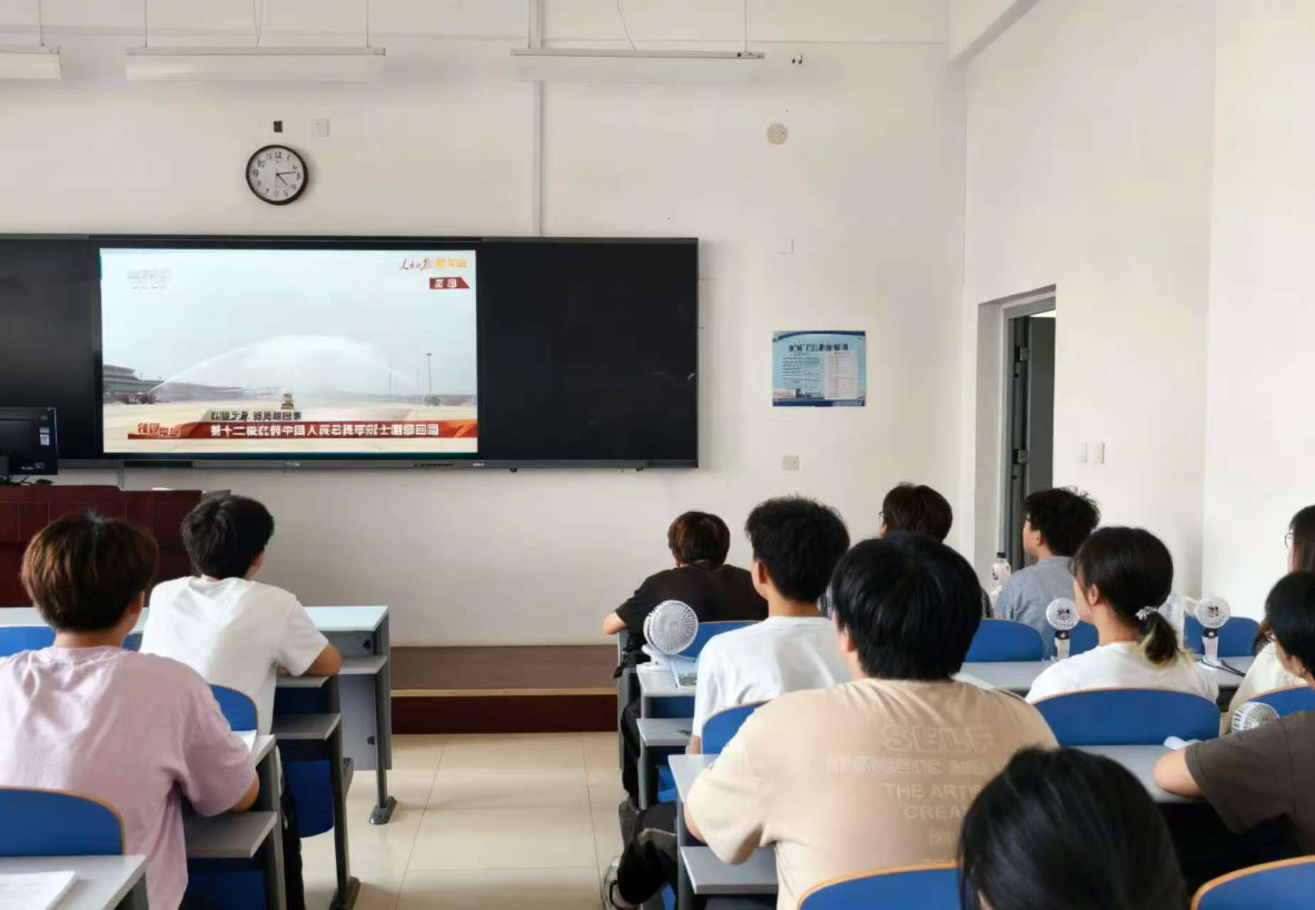 各团支部组织观看第十二批在韩中国人民志愿军烈士遗骸回国安葬仪式直播。将伟大抗美援朝精神和烈士英雄事迹融入“大思政课”,以此引导青年学子厚植家国情怀,汲取奋进力量。