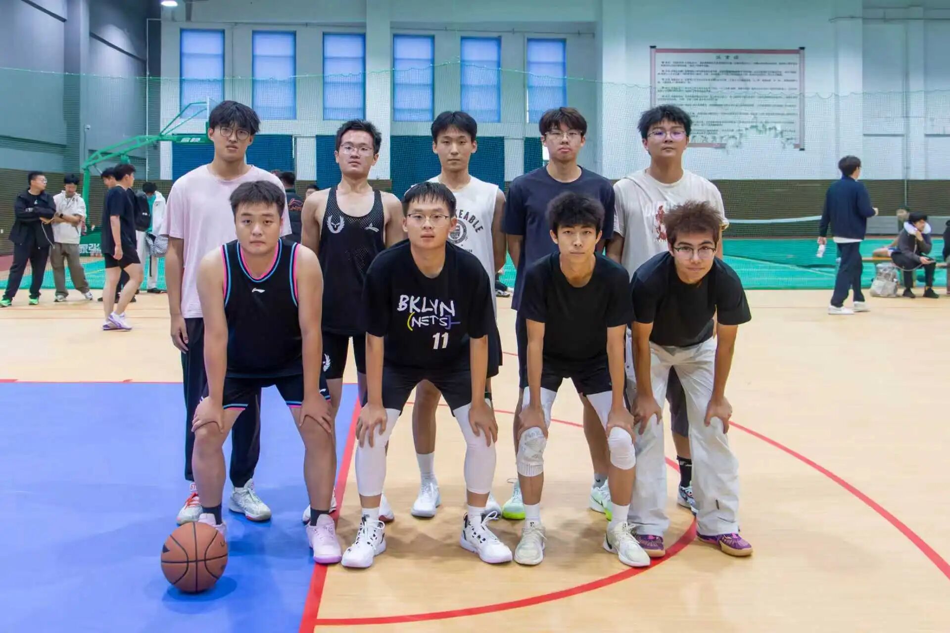 全场目光聚向中线,学院党委副书记邓晗持稳篮球,扬臂将球抛向跳球区,触球瞬间,赛场声响迸发,第二届“智汇杯”新生班级素质联赛之新生篮球赛正式打响。