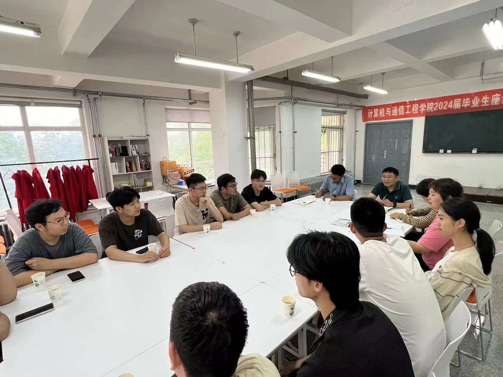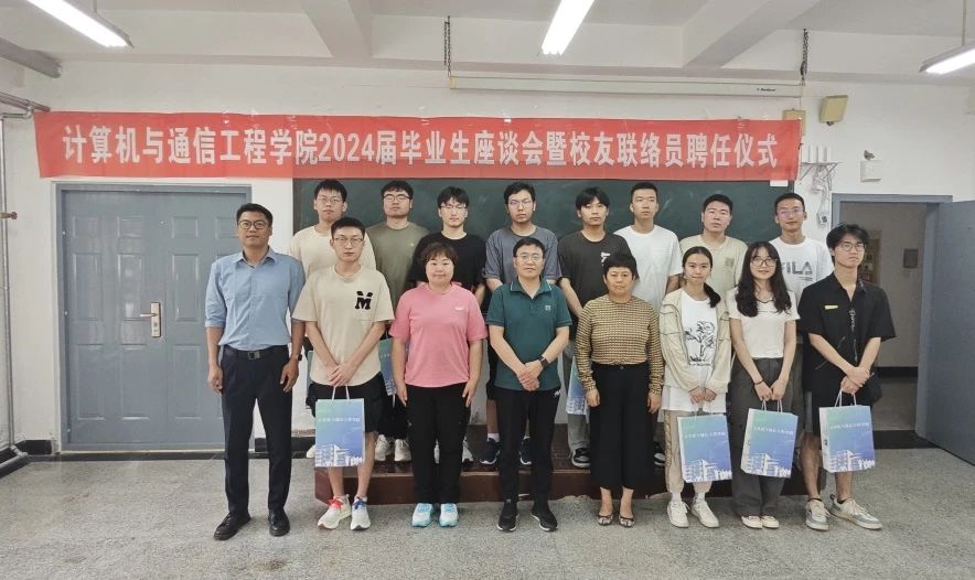 在旅顺口校区一期贝壳楼8308智慧交通虚拟仿真实验室召开计算机与通信工程学院2024届毕业生座谈会暨校友联络员聘任仪式。参加会议的有党总支书记姜来金,学院副院长戚海英,毕业班辅导员胡月,团委书记王衍,会议由党总支副书记程冠杰主持。