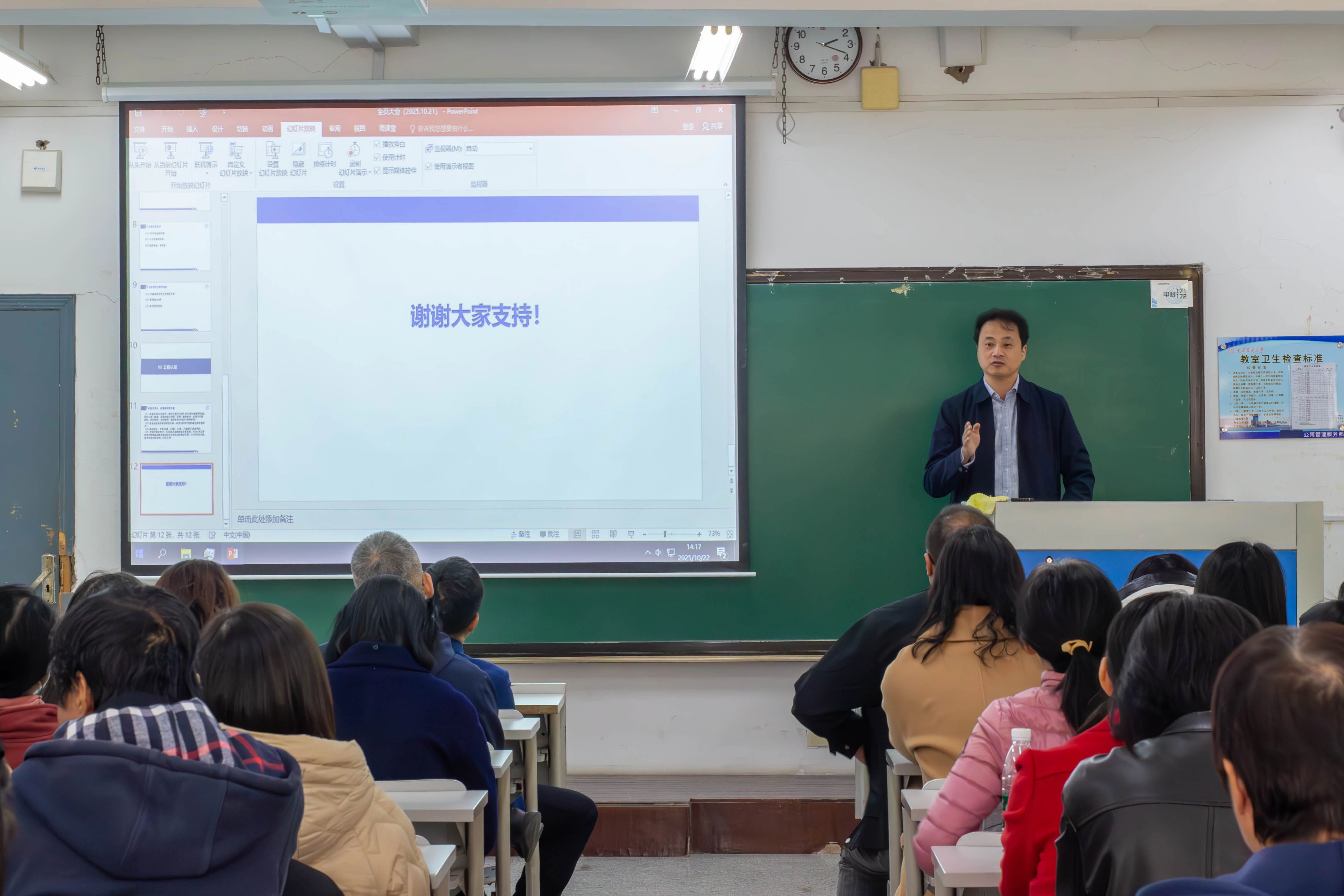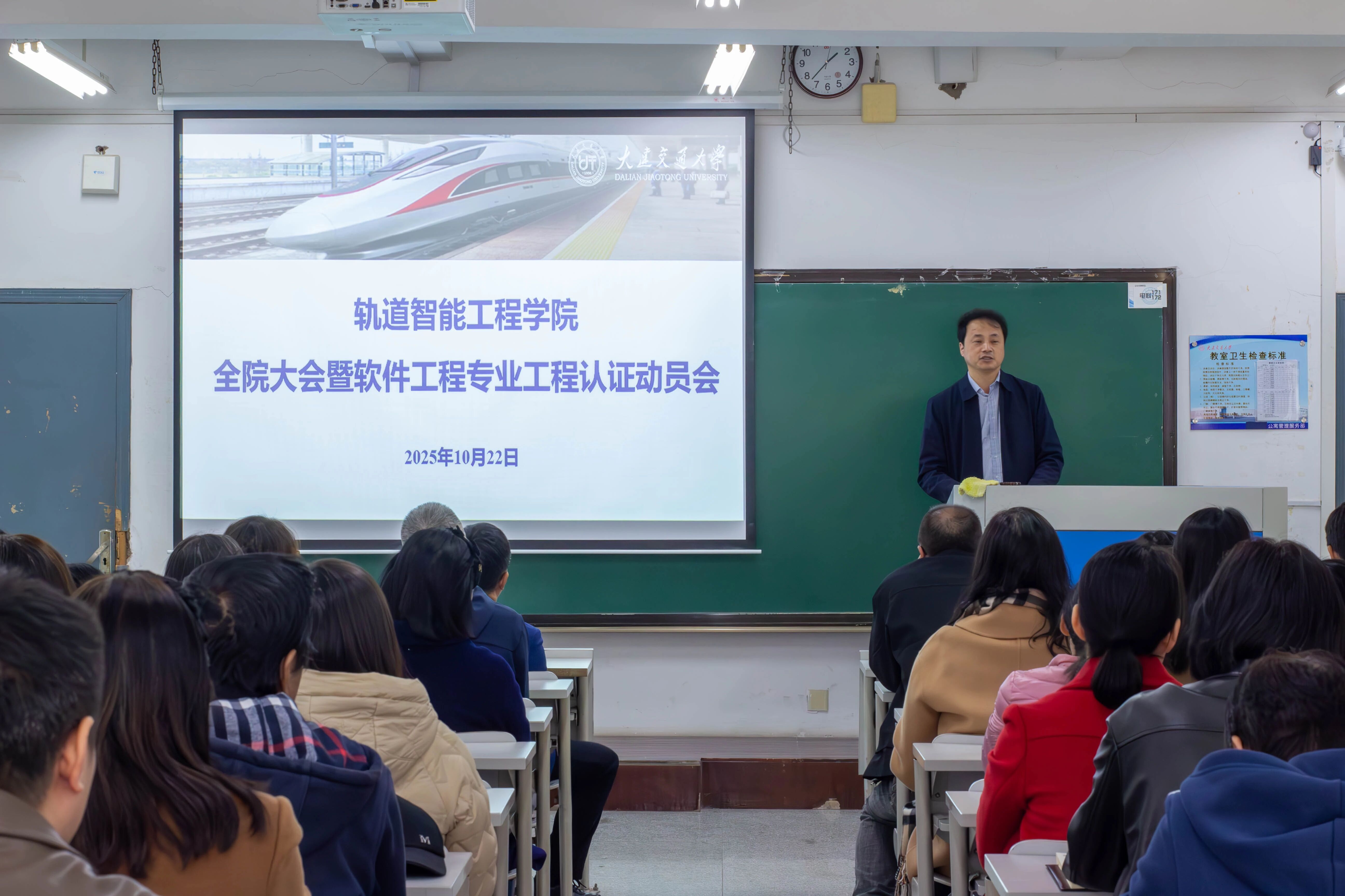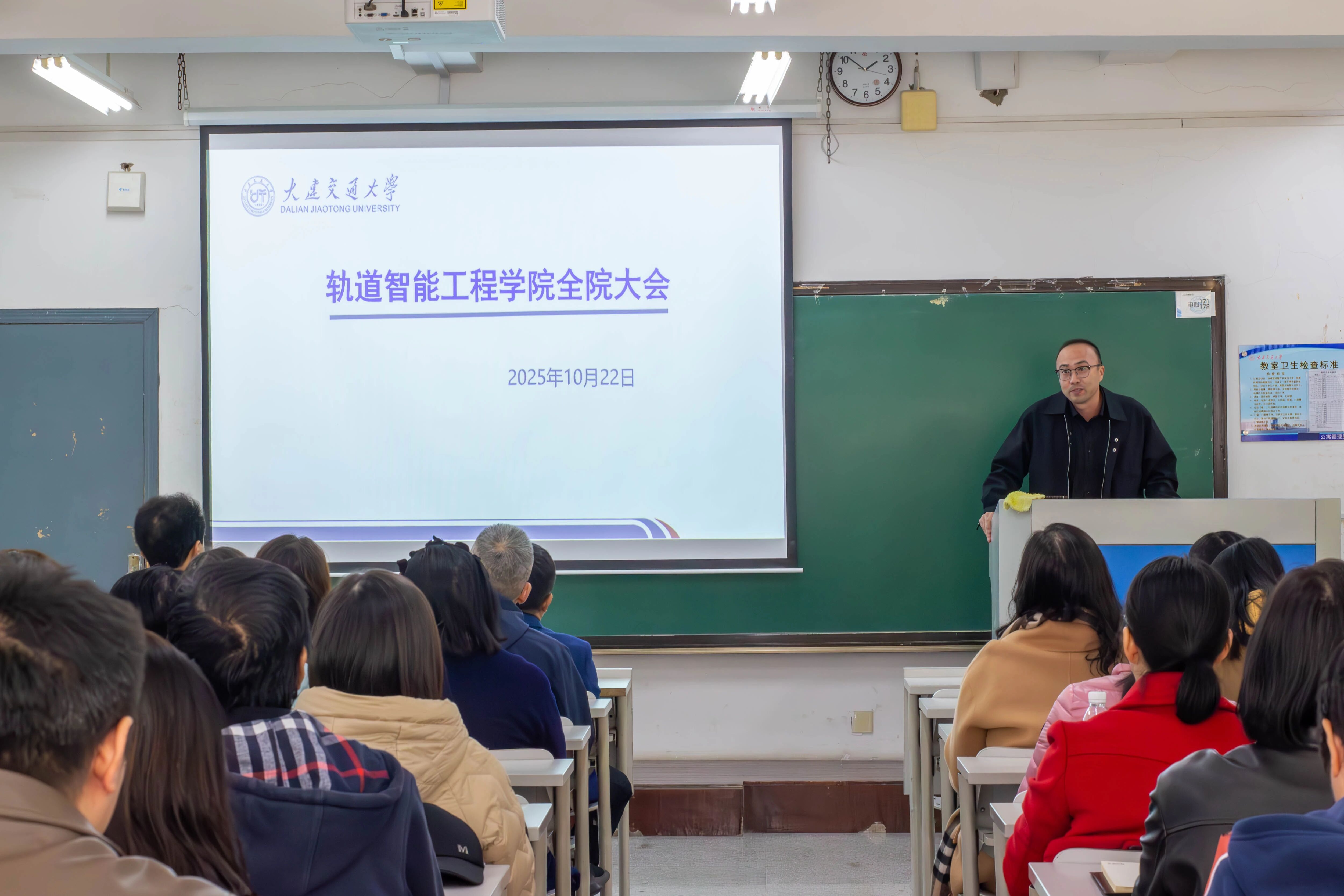 于10月22日在旅顺口校区一期9401教室召开全院教职工大会。学院领导班子、全体教职工参加会议,会议由学院党委书记陈少华主持。