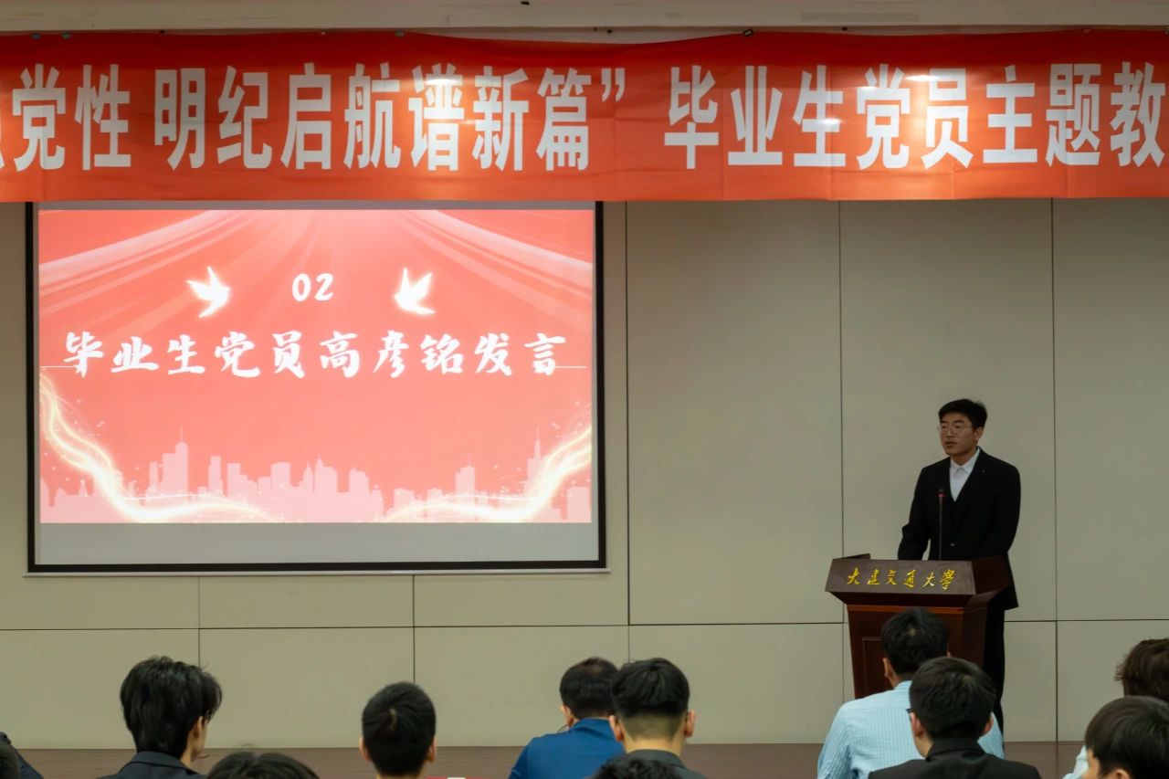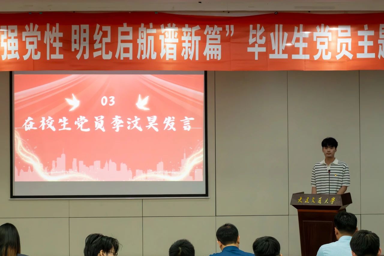 在旅顺图书馆报告厅举办“薪火相传强党性,明纪启航谱新篇”毕业生党员主题教育活动。本次活动由学生党支部书记王衍主持。