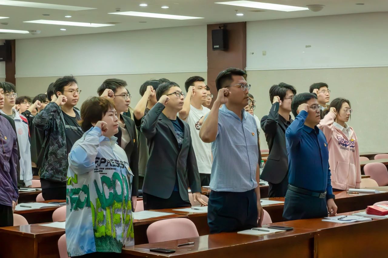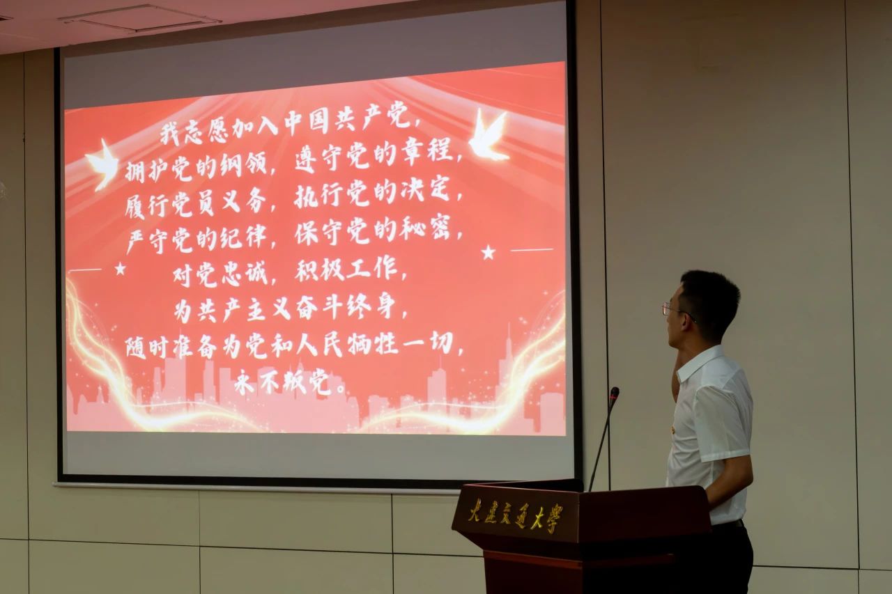 毕业生党员在党支部书记王衍老师的带领下共同重温入党誓词。